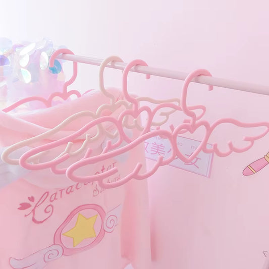 5PCS Durable Pink Sakura Angel Wing Shape Traceless Non-Slip Hanger Girl'S Children Clothes Hangers Rack