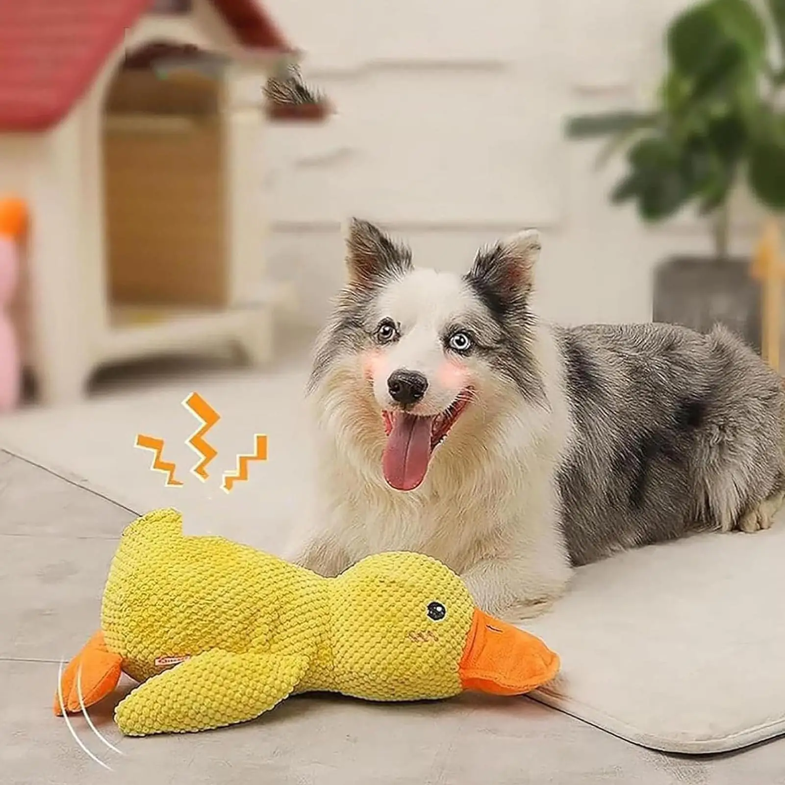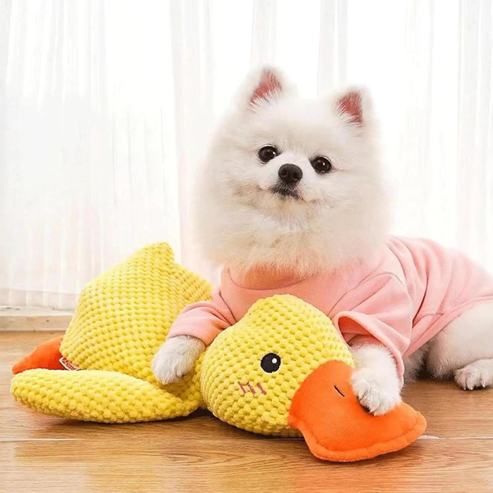 Bullet Points: 1.Interactive Play Companion: The duck dog toy features a double sound device that enhances multi-sensory stimulation, keeping dogs engaged during playtime and supporting emotional stress relief; ideal for interactive dog toys to encourage exploration in the puppy exploration phase while fostering bonding between pets and owners through dynamic auditory and tactile feedback 2.Built to Last for Active Dogs: Designed with tear resistant fibers and robust reinforced stitching, the calming duck toy for dogs provides a reliable option for energetic dog breeds prone to destructive chewing, allowing extended play periods indoors or outdoors while maintaining its shape and functionality 3.Dog Tooth Care Made Fun: With its textured surfaces, the yellow duck dog toy provides gum massage benefits, redirecting chewing actions to assist in stain reduction, ensuring your pet enjoys a playful yet beneficial experience during indoor or outdoor activities 4.All Breed Compatibility: Dog chew toys made with moderate hardness address biting characteristics effectively, ensuring comfortable interaction across all dog breeds and fostering joyful play periods indoors or outdoors without causing strain on teeth or gums 5.Calming Pillow Design: Squeaky dog toys serve as soft stuffed calming pillows, offering indoor comfort and relieving travel stress for pets while ensuring a soothing sleep environment during car rides or at home Dog teething toys are designed to provide comfort and entertainment for your pet while addressing their natural chewing needs. These soft and interactive dog teething toys feature a squeaky mechanism that captures your pet's attention, reducing boredom and encouraging active play. Ideal for training periods or family time, these pet supplies ensure engagement both indoors and outdoors. Whether at the beach, pool, park, yard, garden, or even in the bedroom, these teething supplies offer versatility for travel and everyday use. Crafted to support your pet's development, these dog teething toys promote healthy habits while strengthening the bond between you and your furry companion. Enhance your pet accessory collection with a reliable solution that meets your dog's playful and teething needs.