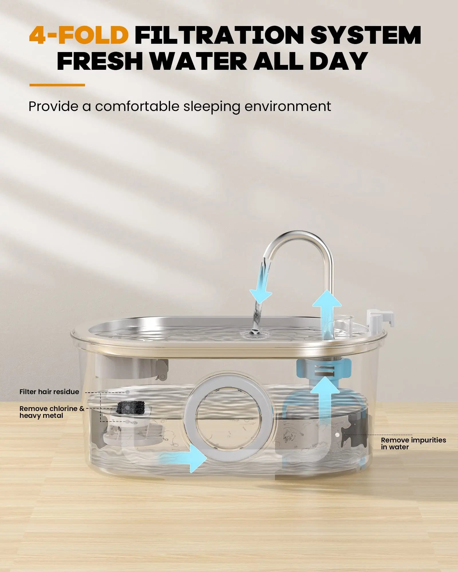 😼【108oz/3.2L - Travel Worry-Free】Use the cat fountain so that you don't need to refill water for your cat frequently. This cat fountain has a large capacity of 108oz to meet your cat's water needs for 8 days. This will allow you to travel with peace of mind.