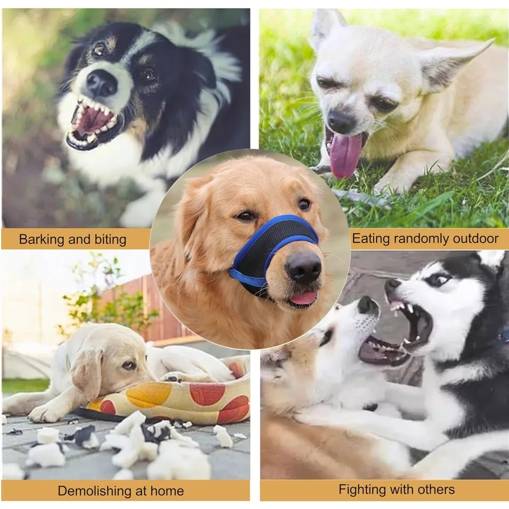 Dog Muzzle,Soft Nylon Muzzle Anti Biting Barking Chewing Air Mesh Breathable Adjustable Pets Muzzle for Small Medium Large Dogs