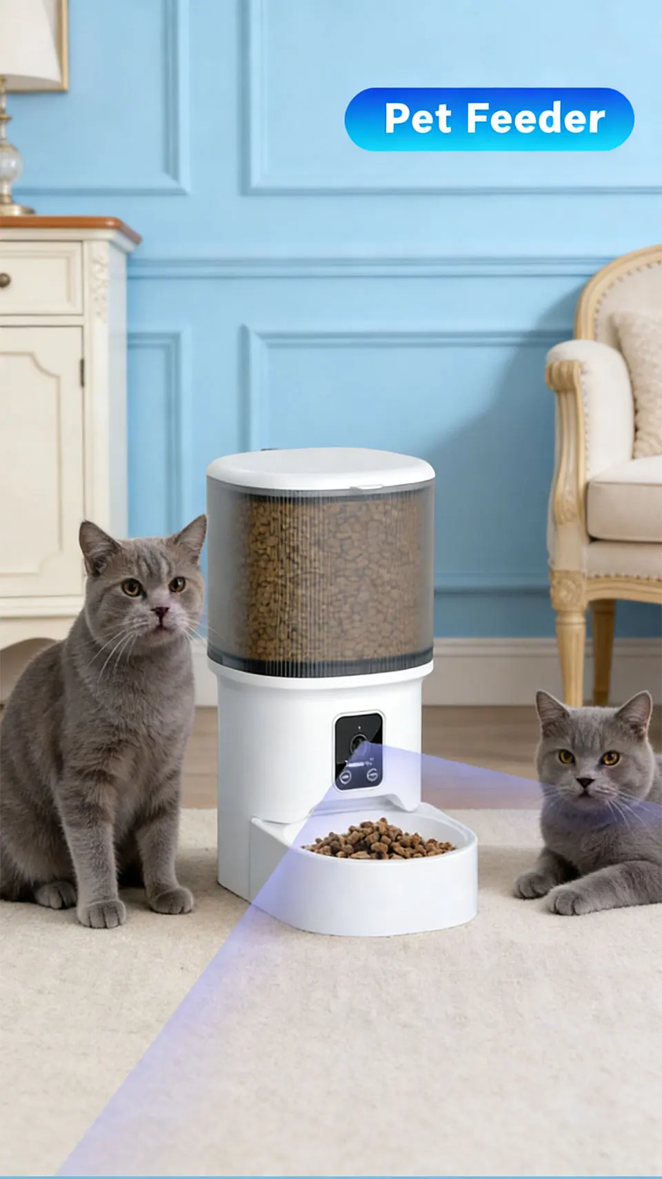 Raymax 4L WIFI Button Automatic Cat Feeder Intelligent Cat and Dog Pet Feeder Smart Pet Cat Food Dispenser Pet Feeder(No 5V 1A)