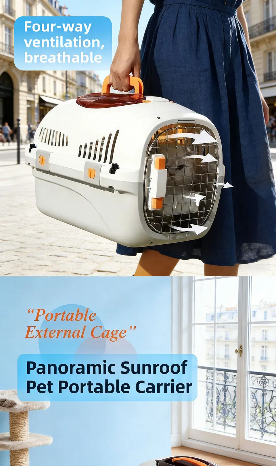 The carrier is suitable for car transportation, making it an ideal choice for long-distance travel with your pet.