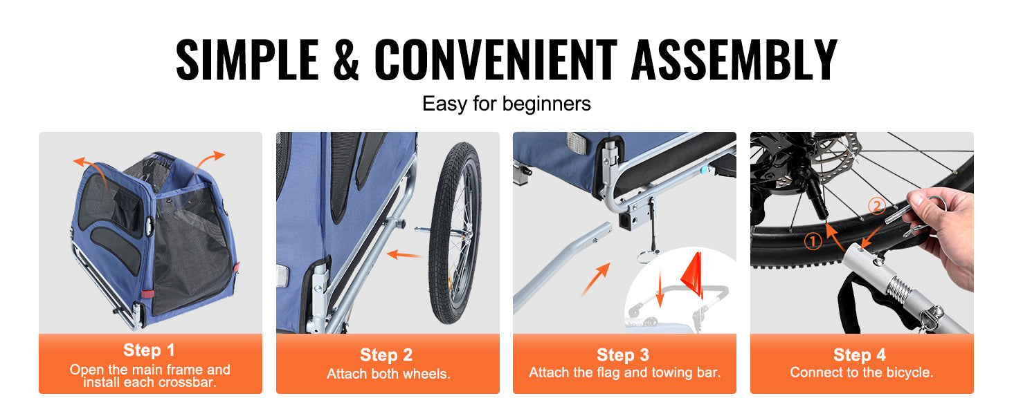 Hassle-Free Setup:Assembling our bike dog carrier is incredibly simple—no special tools or skills are required. Even beginners can get it ready for action quickly, allowing for more time to enjoy adventures with your pet.